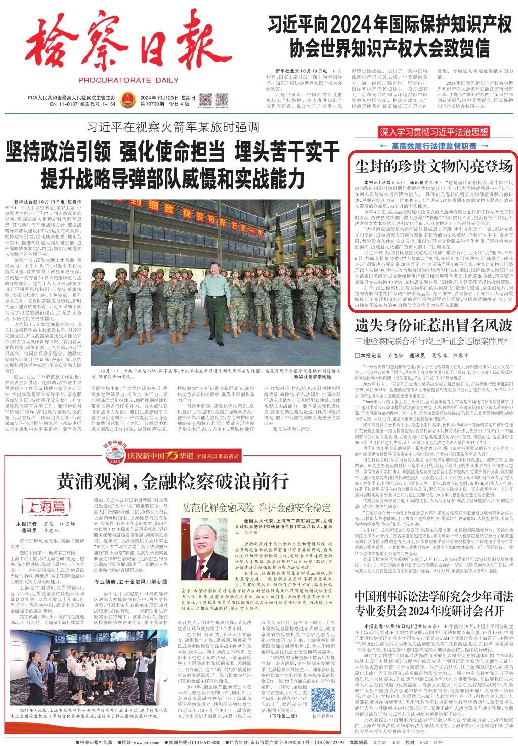 10月20日,《检察日报》头版刊登了《尘封的珍贵文物闪亮登场》一文,对故城县检察院借助“府检联动”机制,与文物部门联合行动,让文物“活”起来的相关工作进行报道。以下是报道内容。