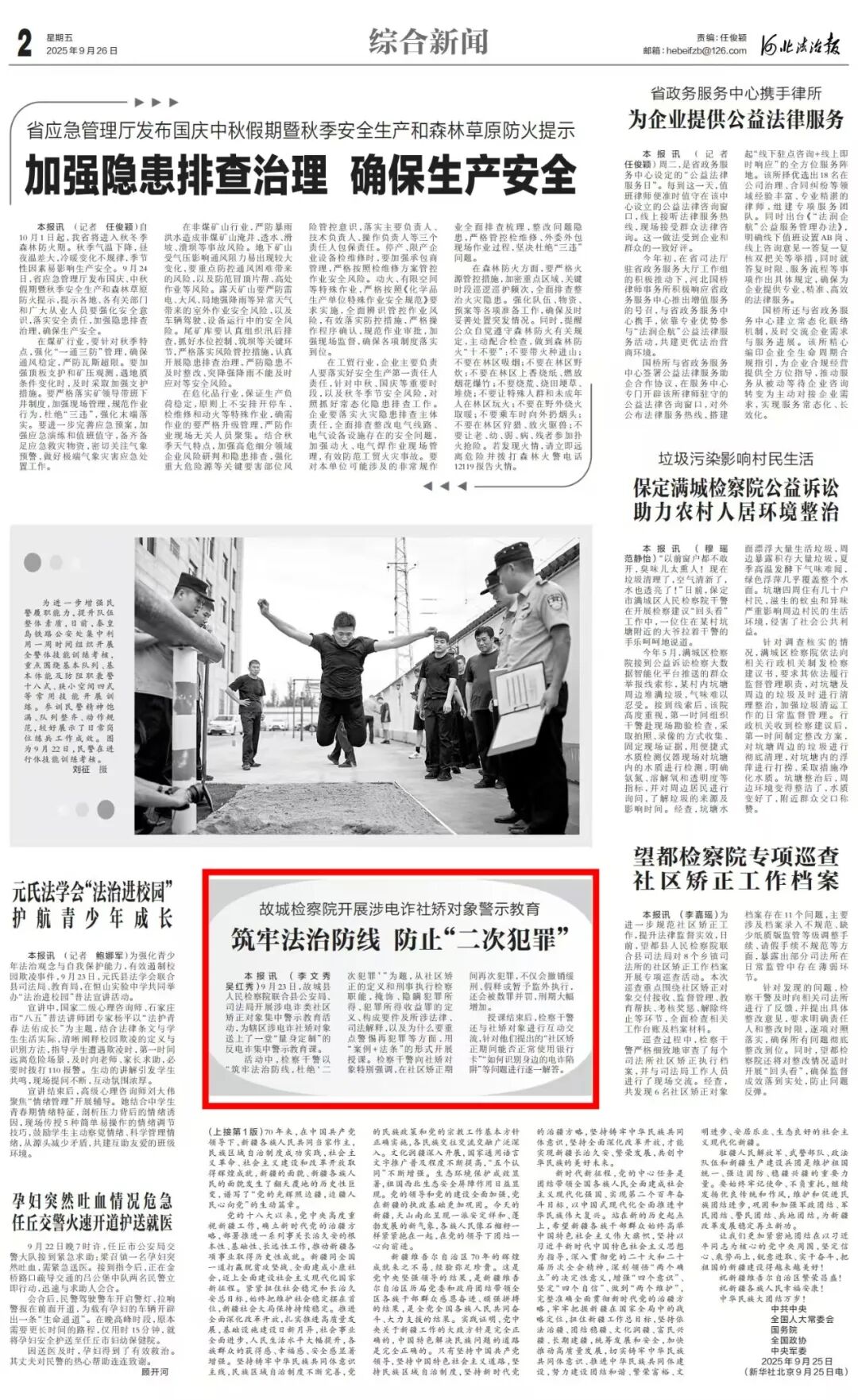 9月23日,故城县人民检察院联合县公安局、司法局开展涉电诈类社区矫正对象集中警示教育活动,为辖区涉电诈社矫对象送上了一堂“量身定制”的反电诈集中警示教育课。