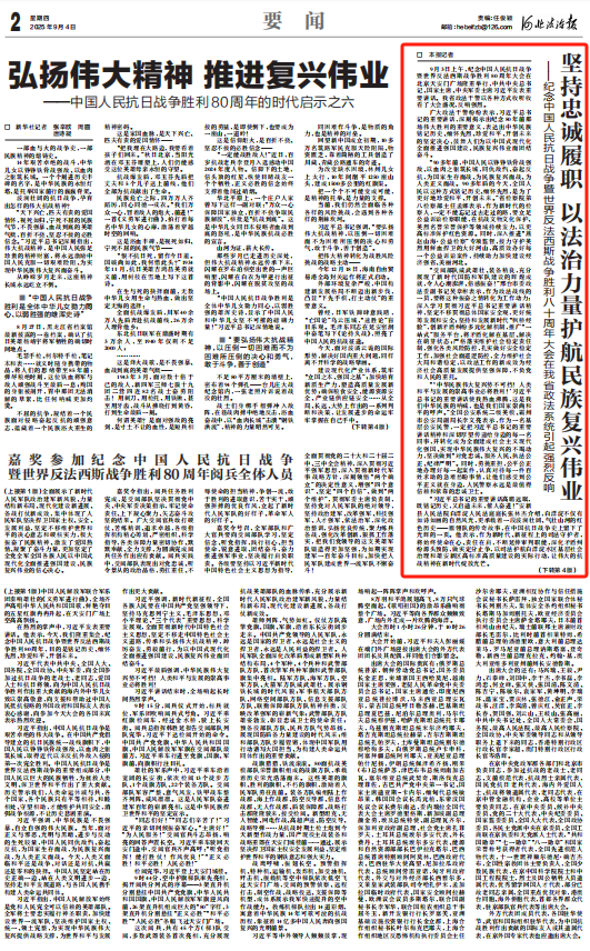 ——纪念中国人民抗日战争暨世界反法西斯战争胜利八十周年大会在我省政法系统引起强烈反响