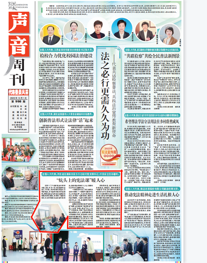 在第十二个国家宪法日即将来临之际,作为一名来自基层的全国人大代表,我深切感受到全社会尊崇宪法、学习法律的氛围日益浓厚。特别是通过与河北省沽源县检察院的多次接触,我看到了基层检察机关在贯彻落实法治宣传教育法、推动宪法精神深入人心方面的扎实努力与创新实践。