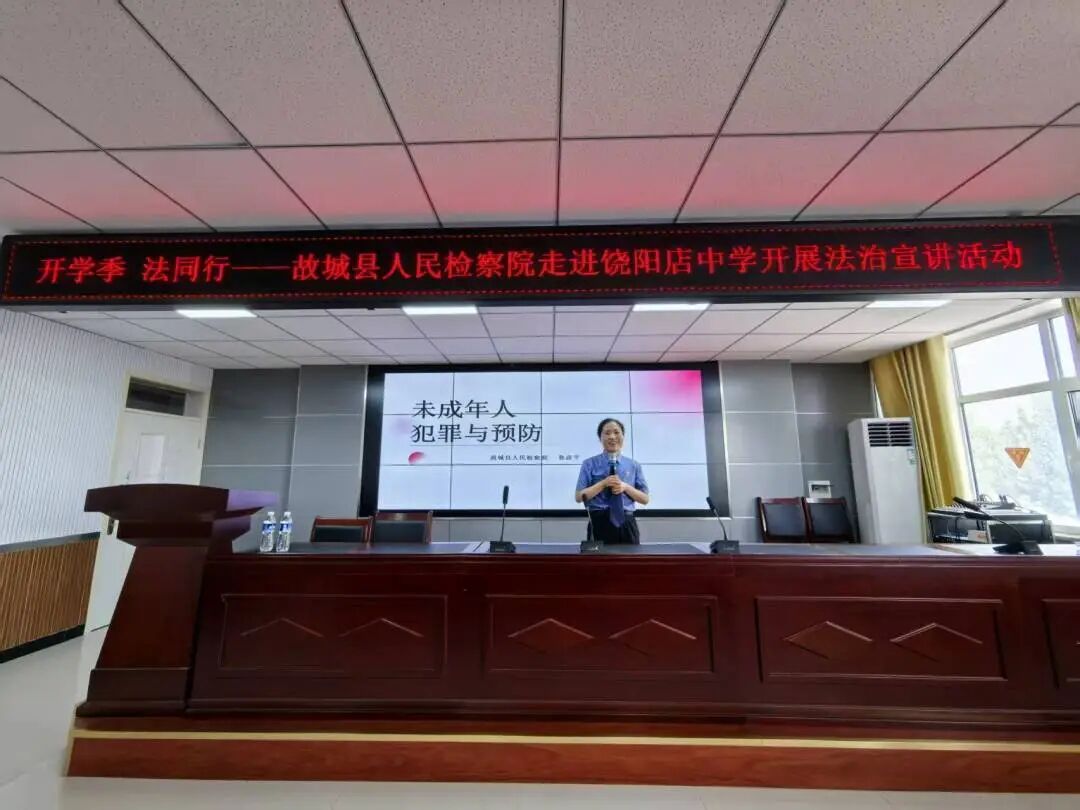 新学期伊始,为切实加强未成年人司法保护,引导青少年树立正确法治观念,故城县人民检察院走进饶阳店中学,为近500名师生开展了法治宣讲活动,以检察力量为青春成长筑牢法治屏障。