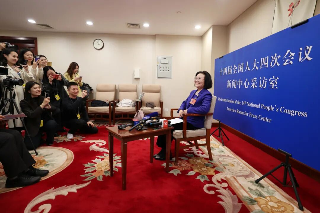 3月3日,台湾省代表团组织集体采访,全国人大代表陈云英接受各媒体采访。