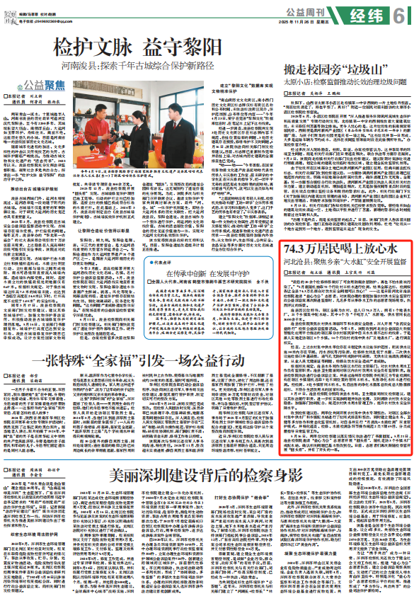 沧县检察院聚焦农村供水薄弱环节和水质安全隐患,深入开展“食药安全益路行”检察公益诉讼监督活动。今年1月,该院收到河北省公益诉讼大数据智能化应用平台推送的辖区部分农村居民家中自来水水质不达标的线索,于是派人实地走访辖区8个乡镇、16个行政村的集中供水厂及地表水厂,进行调查核实。